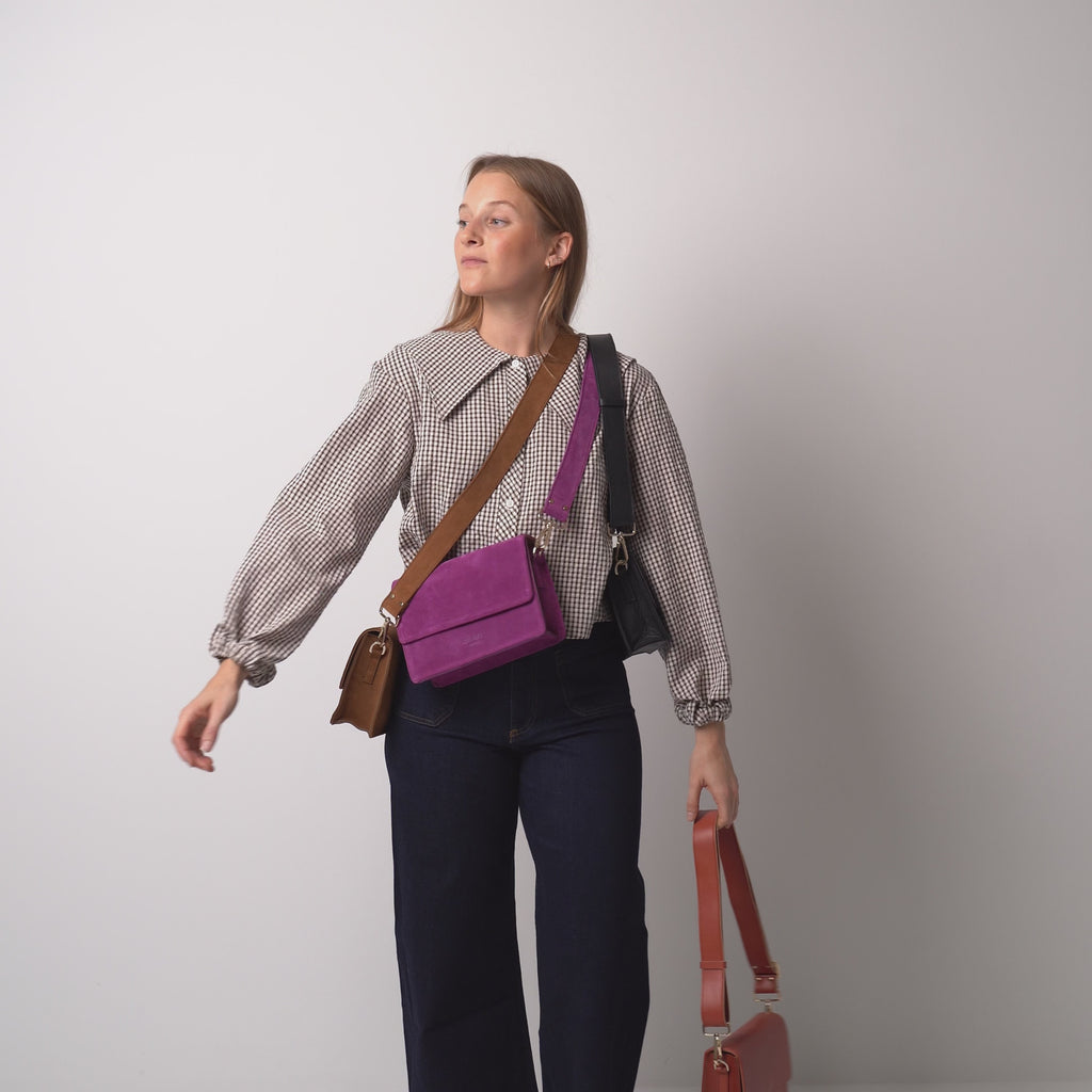 The inner lining - on the one hand made of 48% recycled cotton and 20% recycled polyester (e.g. for our Nandi shoulder bag) or the beautiful beige inner lining made of ecotextile (e.g. for our Nuria suede shopper bag) which is very resistant, anti-bacterial and eco-friendly which fulfills the REACH standard.