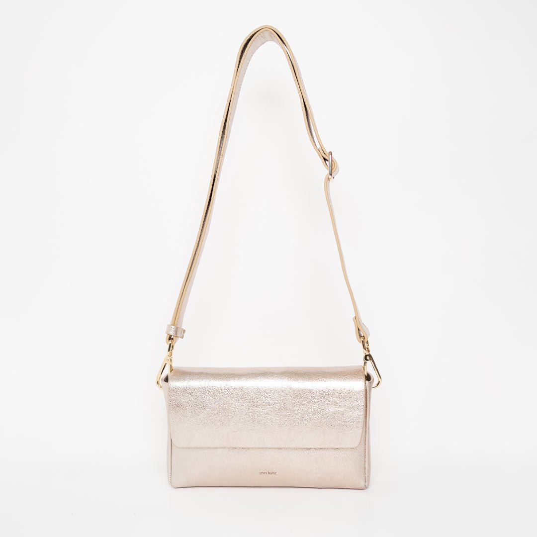 Sleek, soft leather. Compact, stylish, and effortlessly versatile. This bag features a flap with magnetic closure, a small inner pocket, and an engraved logo for a subtle signature touch.