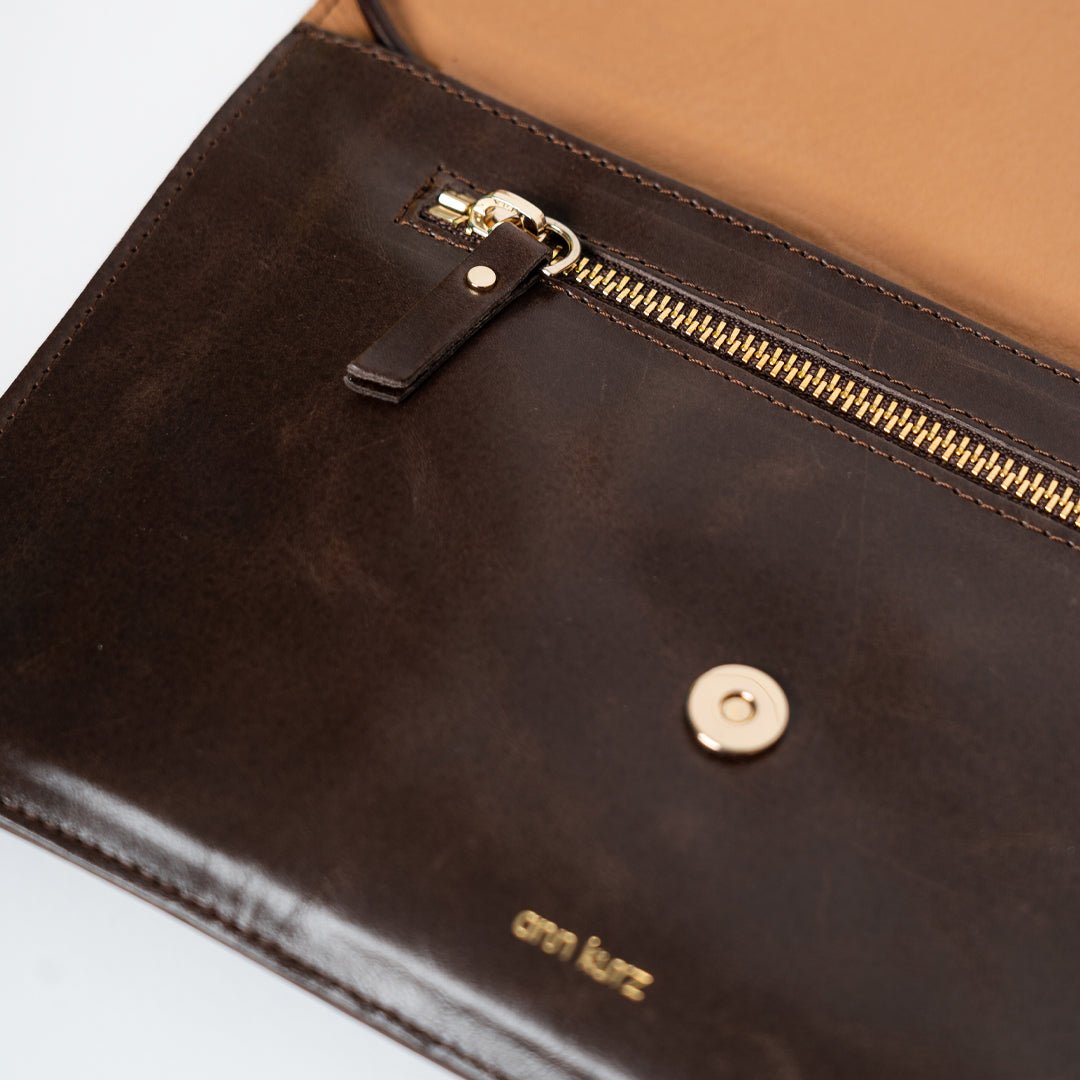 The cowhide - which is tanned in an environmentally conscious way and which we are constantly developing to further reduce the impact on nature. This results for example in accessoires like the Mika Vegetable Tanned Leather Wallet, and many more.